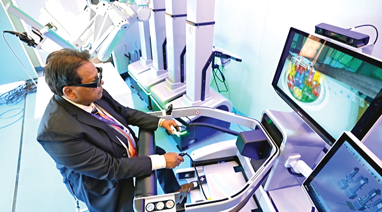Dr Mohit Bhandari performing a procedure through telesurgery.