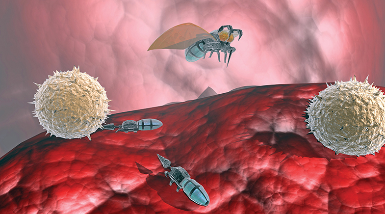 Nanobots could also be deployed for future nanosurgeries to enable biopsies of difficult-to-access body parts. In 2020, researchers at Johns Hopkins University, U.S., created therapeutic nanobots, which they named theragrippers for their ability to use pincer-like appendages to cling to the inner lining of the gut (bit.ly/theragripper-biopsy). The initial experiment was to demonstrate their ability to deliver drugs with precision, but they could be remodelled to pinch out tissue for biopsy.