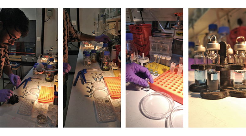 The work was arduous: Chakraborty had to prepare hundreds of individual reaction mixtures, varying the concentrations of each of the four starting compounds and the pH of the solution. This meant setting up arrays of reactions in deep-well and multi-well plates, each well containing a different combination of reagent concentrations. "Nayan really led the way… (with) painstaking, methodical experimental work," says Thutupalli.