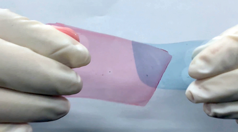 This, however, was a proof-of-concept study, and the plastic was not good enough for real-world applications. Exactly a year later, Aida and his team developed another degradable plastic, based on the same chemical strategy. One of the polymers was a biodegradable wood-pulp derivative called carboxymethyl cellulose. The other was prepared from positively charged polyethyleneimine guanidinium ions. When cellulose and guanidinium ions were mixed in water at room temperature, the negatively and positively charged molecules attracted each other, forming the critical cross-linked network that made the plastic strong. In November 2025, Aida published this research in the Journal of the American Chemical Society (bit.ly/supra-plastic). The new plastic material, too, has the salt bridges that hold the network together – bridges that break when exposed to salt water. To prevent unintended decomposition, the scientists applied a thin protective coating.