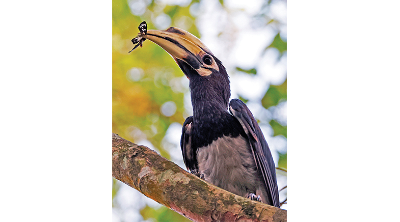 The prey models were of three types: a classic warning colour of orange and black, a brown that merged with the wooden background, and an atypical and novel but potentially warning colouration of bright blue and black. Each model came with a mealworm reward. The researchers observed whether the predators decide to attack and eat or avoid them. In one instance, it found the Oriental Pied-Hornbill discarding a boldly patterned, foul-smelling moth after holding it in its bill for nearly five minutes.