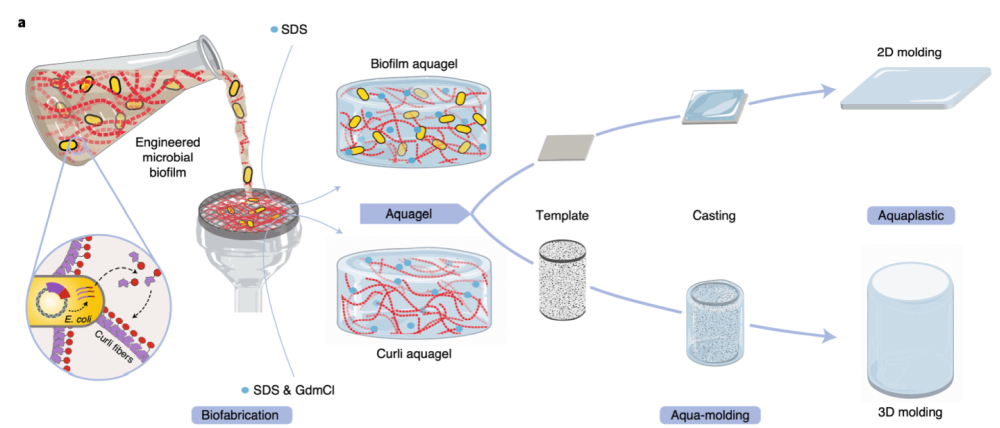 The work on aquaplastic, in fact, began earlier, when Joshi was with Wyss Institute for Biologically Inspired Engineering at Harvard University. He and his postdoctoral fellows – Anna Duraj-Thatte and Avinash Manjula-Basavanna – also first authors of the paper, observed that when these hydrogels produced by genetically engineered E.coli are cast and dried under ambient conditions, they can become plastic with mechanical properties comparable to those of conventional plastics.