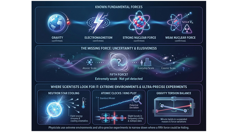 Physicists have long wondered about an unknown force that could answer unsolved questions. To test their theory, Vitagliano's team focused on neutron stars to examine how they cool. If a fifth force existed and was carried by new, light particles, these particles could be produced inside a star and escape, carrying energy. This would make the neutron star cool faster than expected.