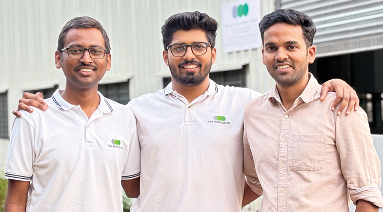 As a class project in his final year of Mechanical Engineering at the Rajarambapu Institute of Technology, Sangli, Maharashtra, Indrajeet Nikam created carry bags made of biodegradable plastic. He decided to take the idea forward after graduating, teaming up with his Electrical Engineering batchmate Karan Chavan, and Tejas Zagade, a student of Mechanical Engineering.